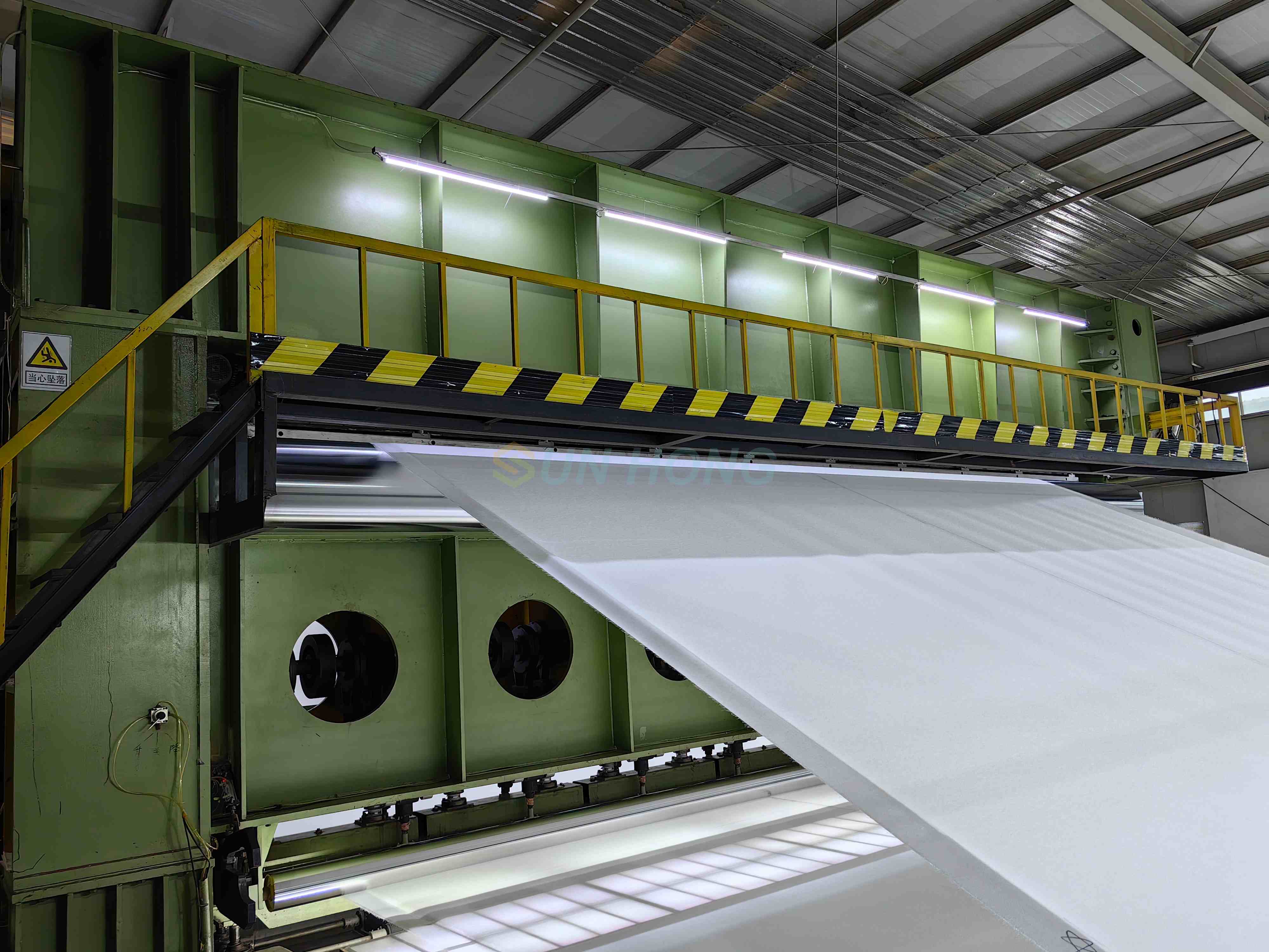 Durante el funcionamiento normal, la línea estándar del fieltro de prensa debe ser paralela a la línea de presión. Si la tensión en toda la dirección transversal del fieltro de prensa es desigual o la presión en la línea de presión es desigual, es común que la línea estándar del fieltro sobresalga o sea cóncava en el medio o se incline a lo largo de toda la línea, lo que hace que los orificios del fieltro cambien de forma cuadrada a forma de diamante, reduciendo el área de deshidratación pequeña y afectando la capacidad de deshidratación. Esto a menudo provoca enfermedades del papel, como estampados en papel húmedo, lo que acorta la vida útil del fieltro. Por lo tanto, se debe prestar atención al control del funcionamiento normal de la línea estándar del fieltro.